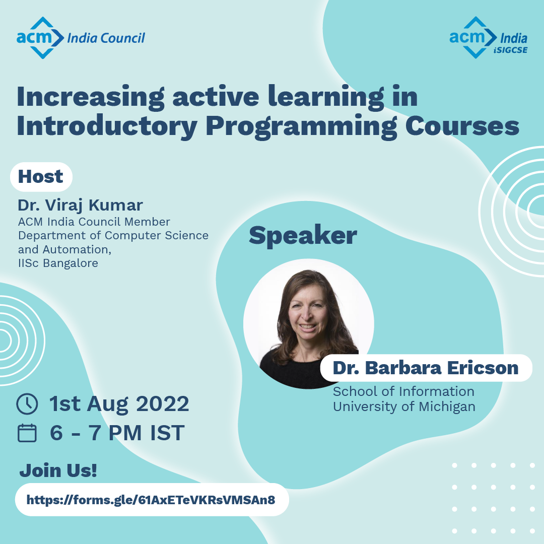 Increasing Active Learning in Introductory Programming Courses with Prof. Barbara Ericson. [Poster] [Slides] [Recording]