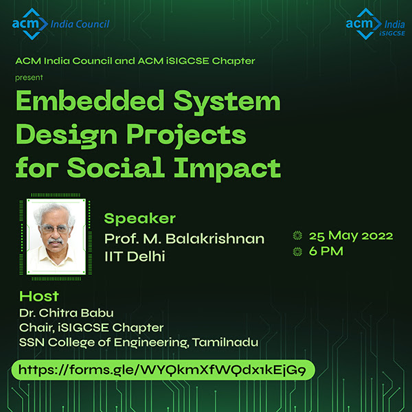 Embedded System Design Projects for Social Impact by Prof. M. Balakrishnan. [Poster] [PPT] [Recording]